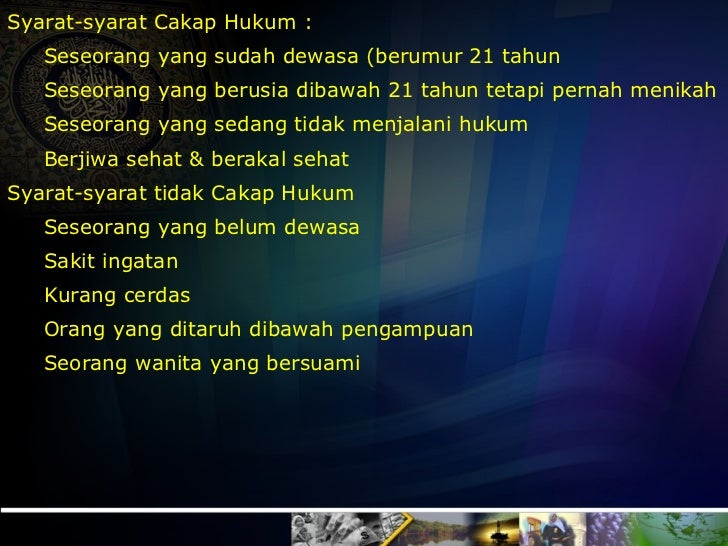 Jika memang terdapat kondisi lemah kesadaran sakit sakitan adanya tekanan psikologis maka itu menjadi bukti yang cukup. Cakap hukum secara perdata berarti kecakapan seseorang untuk melakukan perbuatan hukum di lapangan perdata dan karenanya mampu untuk mempertanggungjawabkan akibat hukumnya. Adapun cakap hukum adalah kemampuan subyek hukum untuk melakukan perbuatan yang dipandang sah secara hukum.