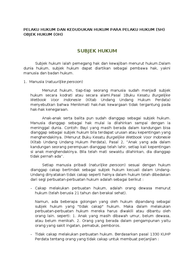 Menurut pasal 1330 kuhperdata orang orang yang dinyatakan tidak cakap adalah mereka yang. Tidak cakap melakukan perbuatan hukum berdasarkan pasal 1330 kuh perdata tentang orang yang tidak cakap untuk membuat perjanjian yaitu. Pasal 31 ayat 2 uu no.